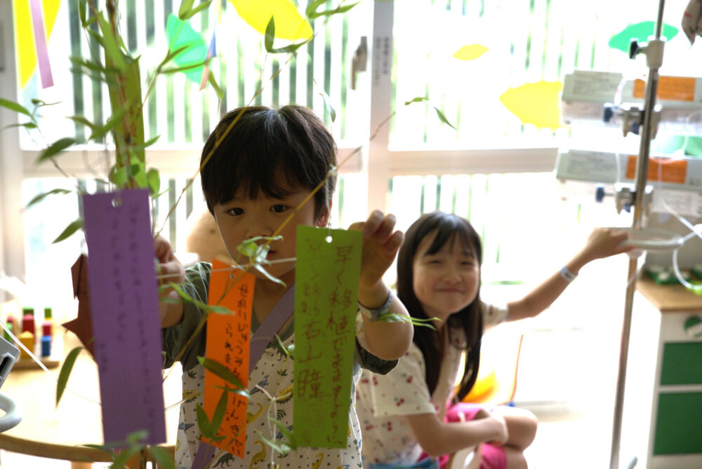 七夕の夜にベランダで迅に微笑みかけるコリーの姿と、「早く移植できますように」と短冊に願いをこめる入院中の瞳