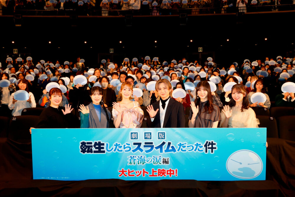 リムル役の岡咲は公開を迎えたことについて「取材や完成披露試写会ではまだ言えないこともたくさんあったけれど、公開してみんなと共有できることが嬉しいです。劇場版第2弾の初めのビジュアルを発表してから約一年、ようやくここまで来たな!という感じです」と感慨深げに語った。ゴブタ役の泊も「楽しみにしているという声はたくさん届いていたので、皆と共有できることが嬉しいです。ゴブタの観てほしいポイントがたくさんあります!」と力強くコメント。ユラ役の大西は「みんなの感想を検索したら、ゴブタの活躍に触れる声が多くあって、まさかゴブタに泣かされるとは思わなかった、というコメントもあったので、嬉しかったです。どんどん感想をお願いします」とコメント。ミオ役の小坂は「小さい頃から『転スラ』ファンなので、第2弾の映画化が発表された時も、絶対に観に行こう!と思っていたけれど、まさかそんな憧れの作品に自分が関われるなんて夢にも思っていませんでした。今でも夢のようです」と熱く語った。ヨリ役の藤嶌は「ついに公開されて嬉しいです!母が公開初日のお仕事帰りに観てくれて、面白かったよ!と連絡をくれました」と身近な人からの反響に感動した様子でコメントした。