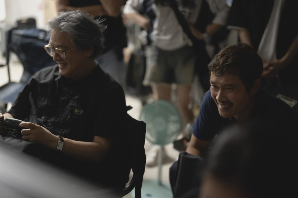 映像ではマンスが1人目のターゲットに選んだボムモ(演:イ・ソンミン)とその妻・アラ(演:ヨム・ヘラン)とのバトルが切り取られている。わずかな席しか残されていない製紙会社の職を得るため、どんなライバルが存在するのか調査し、業界歴が長く優秀なボムモに狙いを定めたマンスはボムモの家にやってくる。裏山から双眼鏡を使って家の様子を覗き見ていると、急にボムモが表れ大慌て。覚悟を決め拳銃を握るも不慣れな殺しに大汗をかき、その汗が目に入ってもう大変。引き金を引こうとすると、妻のアラの声が聞こえ咄嗟に隠れようと無様に転げてしまう。次の映像では、拳銃片手に鬼の形相で追いかけてくるアラから必死に逃げようとするマンスが切り取られる。「う゛わあああああ」と情けない叫び声をあげ、手こずりながらもなんとか車を発進させ命からがら逃げだしたマンスだったが、スマホを確認すると「奥さん 不在着信10件」の文字。トドメにガソリンメーターはほぼ空を指しており「クソ!!」と渾身の悪態をつくのだった――。いずれの映像もこれまで見てきた“かっこいい”イ・ビョンホンを想起させるものではなく、どちらかといえば“ダサい”イ・ビョンホンとなっているが、それこそが彼の新境地。パク・チャヌク監督もこれまでの自身のスタイルとは異なる最新作に「私の映画だからといって訝しまず、安心して笑ってください」と観客にアドバイスを贈っている。