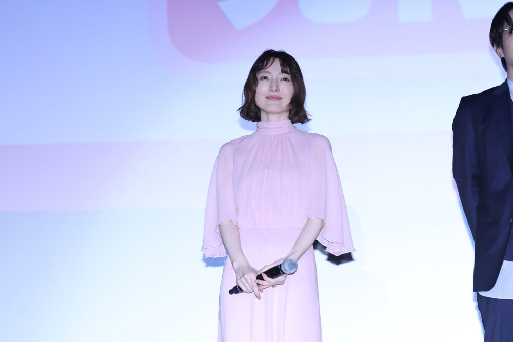 そんな凛子が自室で『うさねこ部』以外の大好きなアニメを見ようとすると、決まって右隣の部屋からドンドンと抗議の音が。そして壁を蹴破って現れたのは『うさねこ部』の原作者・ウサ春こと右沙田春真だった。右沙田を演じた石谷は「佐槻と真逆で、口が悪くて粗暴に見られがちですが、実はウサギっぽい寂しがり屋なところがあって。ひとりで食事をするのが嫌いというところもあって、可愛いんです。最初の登場シーンはめちゃくちゃ驚くと思いますが、可愛い奴だなと思っていただければ」とアピール。しかし司会の佐藤アナウンサーからは「1話を見て可愛い奴というところまで思えるかどうか……」と容赦ないツッコミを受けて会場は大笑いとなった。