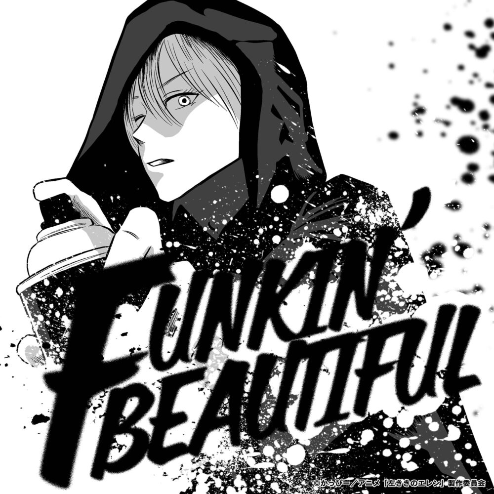 ALIによるオープニングテーマ「FUNKINʼ BEAUTIFUL feat. ZORN」は『左ききのエレン』原作者・かっぴー描き下ろしのジャケット仕様。エレンがこちらに向かって楽曲タイトルを書き上げるクールなイメージに仕上がっている。