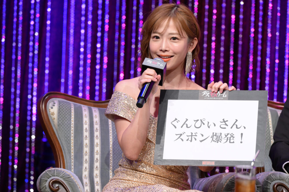 続けて、紗倉が出したフリップに書かれていたのは「ぐんぴぃさん、ズボン爆発!」。「ぐんぴぃさんといえば、バキ童じゃないですか。そんなぐんぴぃさんから、急に轟みたいな聞いたことない⾳が流れたんです。ぐんぴぃさんから煙が出ていて、ズボンが爆発していたような感じでした。ぐんぴぃさんはキスをまだしたことがないということだったんですけど、何が起きたのかわからなかったんです。(笑)今までキスをする流れでズボンが爆発する流れってみたことないじゃないですか?」と、初キスのぐんぴぃのシーンでの驚きのエピソードを披露。