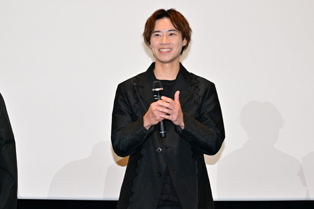 過去の阿久津実を演じた⼾塚は、アニメーション声優初挑戦。「右も左もわからなかったけれど、皆さんに⽀えていただき素敵な作品に出会うことが出来ました。声を⼊れる時に密室の中にモニターがあって、その環境に慣れずに素⼈でした。実写とは違い気持ちの乗せ⽅や会話の仕⽅もどこに向けて表現したらいいのかわからなかった」と当時の⼼境を報告した。アフレコではなく、画が出来る前の状態のプレスコで収録したことから「完成が想像できなかったからこそ、冒頭の花⽕で感動した。画全体に幸福度があって凄く幸せになった。アニメーションの⼒を感じました」と⼿応えを得ていた。
