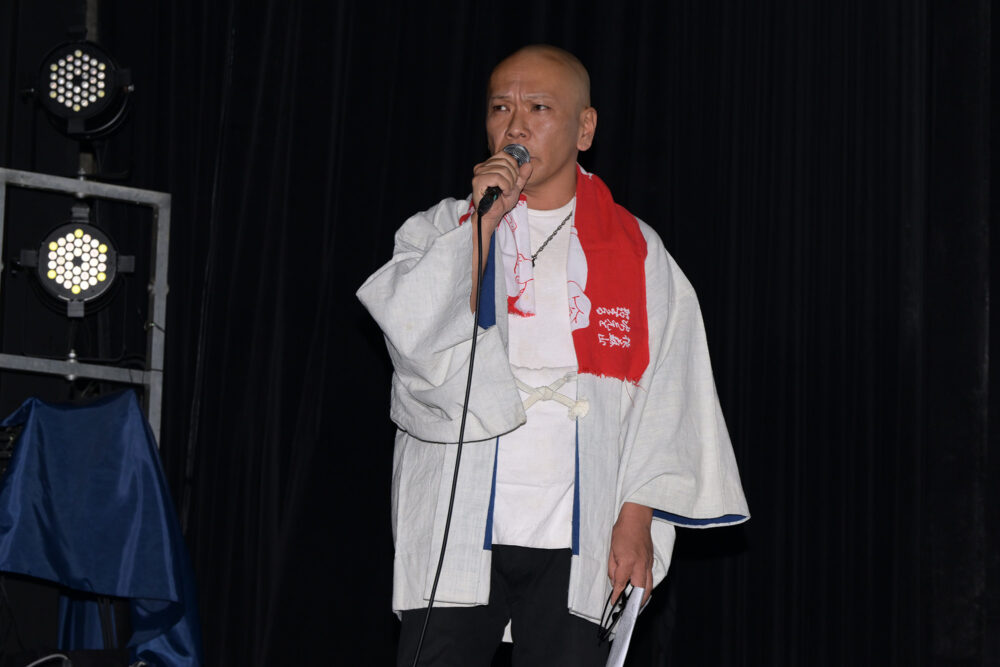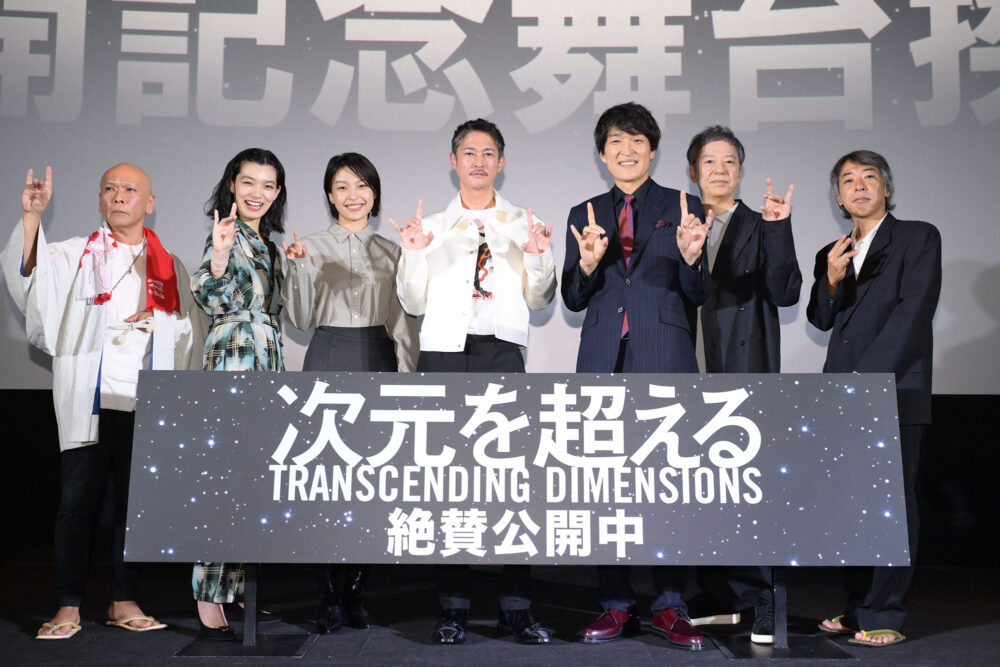満席の観客のもとに団吉を演じた切腹ピストルズの隊⻑・飯⽥団紅がMCとして登場。2018年から豊⽥組に参加した経緯を話し、“次元を超えた”観客を盛り上げると、飯⽥の呼び込みで監督・キャストが登壇。