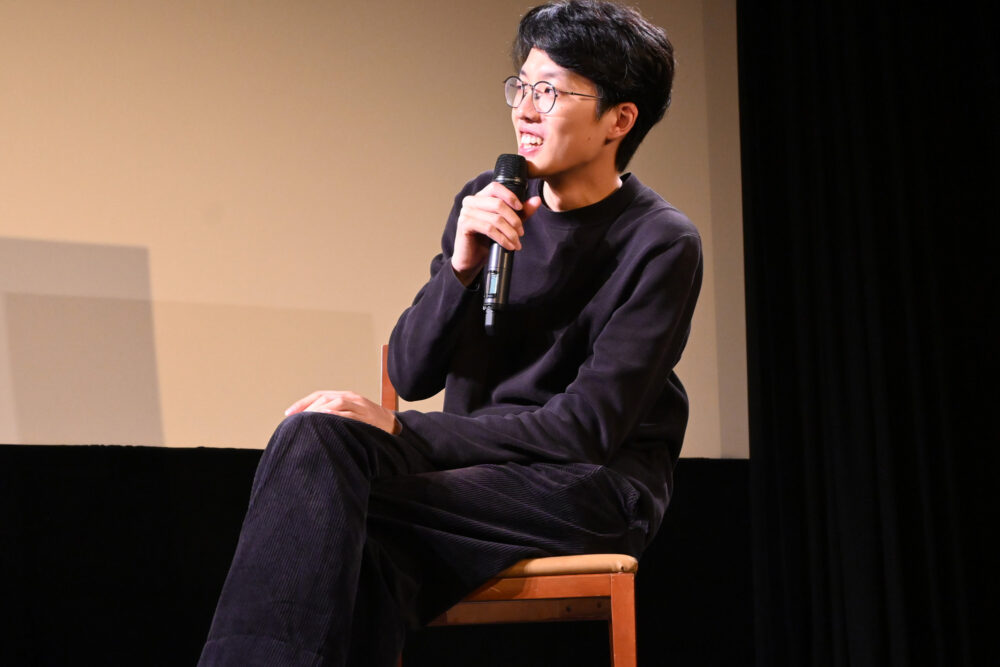 過去にフィルムで花⽕を撮ったことがあるという井筒監督は「デジタルだとペタッと⾒えてしまうところを、フィルムだと奥⾏きが出て、ちゃんと“球”に⾒える。花⽕って⽣き物なんですよね」と振り返る。それに対し、「僕も花⽕をいかに“⽣きたもの”にするかを追求したかった。デジタルでもちゃんと奥⾏きを出せるようにこだわりました」と語る⼩島監督は、カラリストと共に2ヶ⽉間スタジオに⽸詰となり、花⽕の持つ本来の美しさや⽴体感を表現するために特殊なアプローチした⽇々を述懐。「35mmフィルムで撮影された花⽕の写真を参考にし、光の境い⽬や境界が“⽣き物みたいにじわじわと動いている”感覚を表現しました。そして、デジタル撮影やスマートフォンで撮った花⽕の映像では失われがちな、光の細かい振動感をどうやってスクリーンに出せるかも研究しました」。