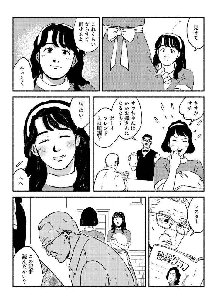 漫画は、証言台に立つサチの印象的な姿から始まる。性別適合手術を受け、息をひそめるように暮らしていたサチ。恋人の若村と支え合いながら幸せな日々を送っていたのだが、弁護士の狩野から「あなたにこの裁判の証人になってもらいたい」という依頼を受け、サチのささやかな生活が一変していく―。