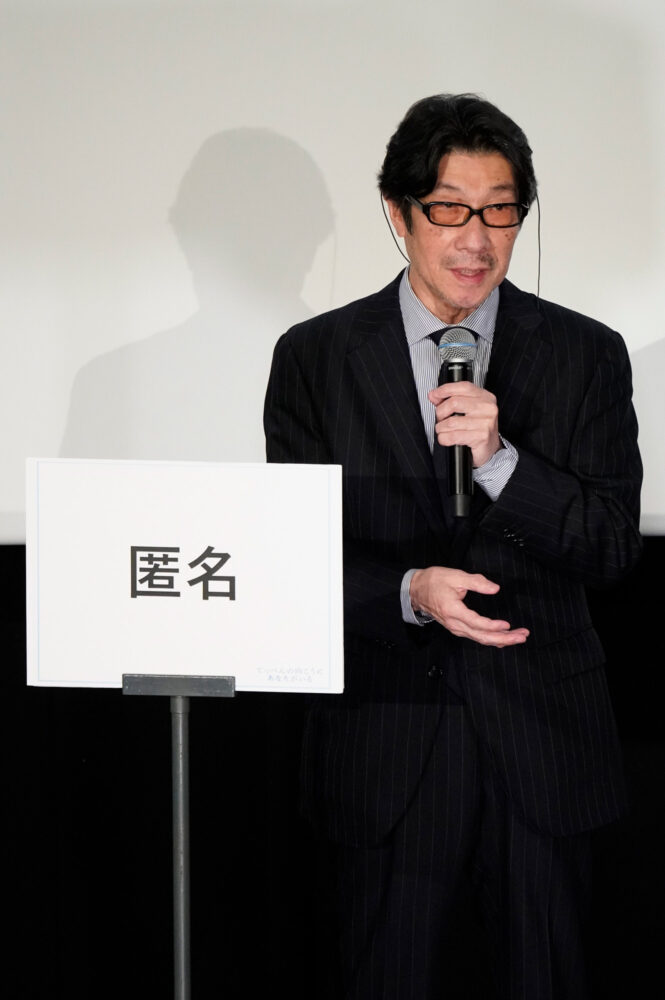 最後に監督は「匿名の方がいる。今はSNS上で映画を1本作ると匿名の方々が罵詈雑言とか、たくさん書かれていちいち傷ついてる自分がいるんですけど、でもそういう人もお金を払って劇場に行かれたということだと。まあ辛くはありますけど、受け入れるしかないなと。そういう意味でてっぺんの向こうに匿名の方がいる。」と回答した。