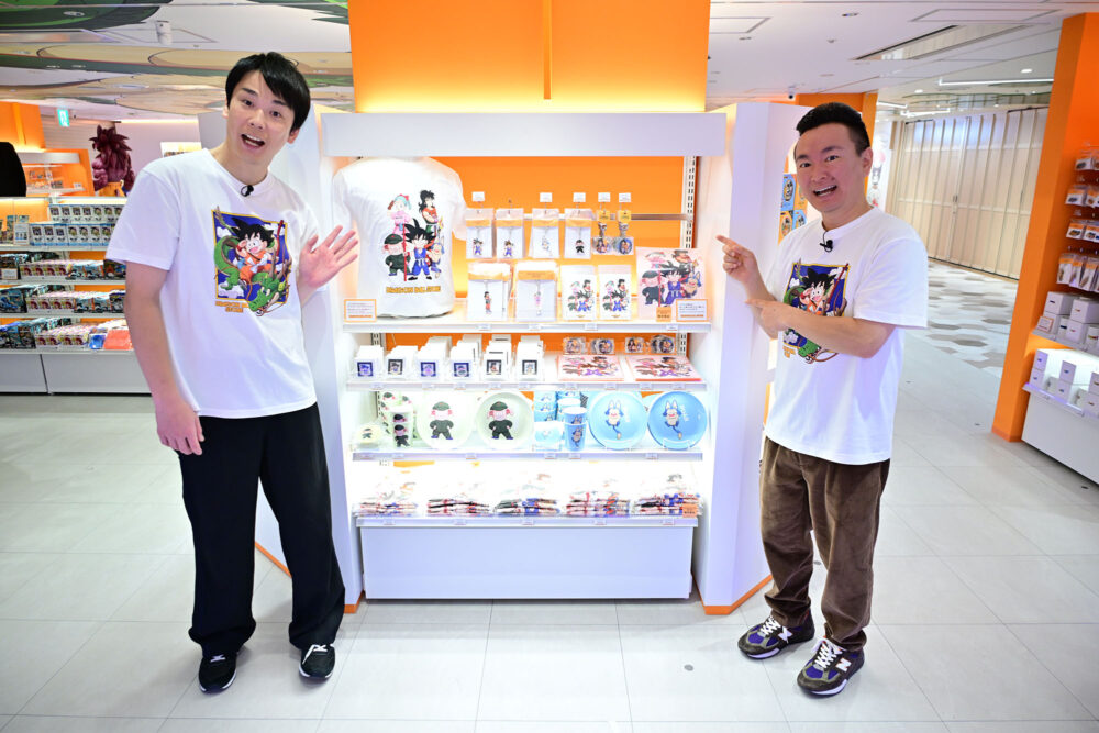 一方、古着好きの山内は「僕は最近『DRAGON BALL』のビンテージTシャツを集めていて、ここで発売されるTシャツもゆくゆくはプレミアがつくのではと…。なので買いたい、というかもらえるならばもらって帰る」とまたまたおねだりすると、すかさず濱家から「投資目的で見るなよ!『DRAGON BALL』によこしまな金の話をする奴は退場!」とまたまた怒られていた。