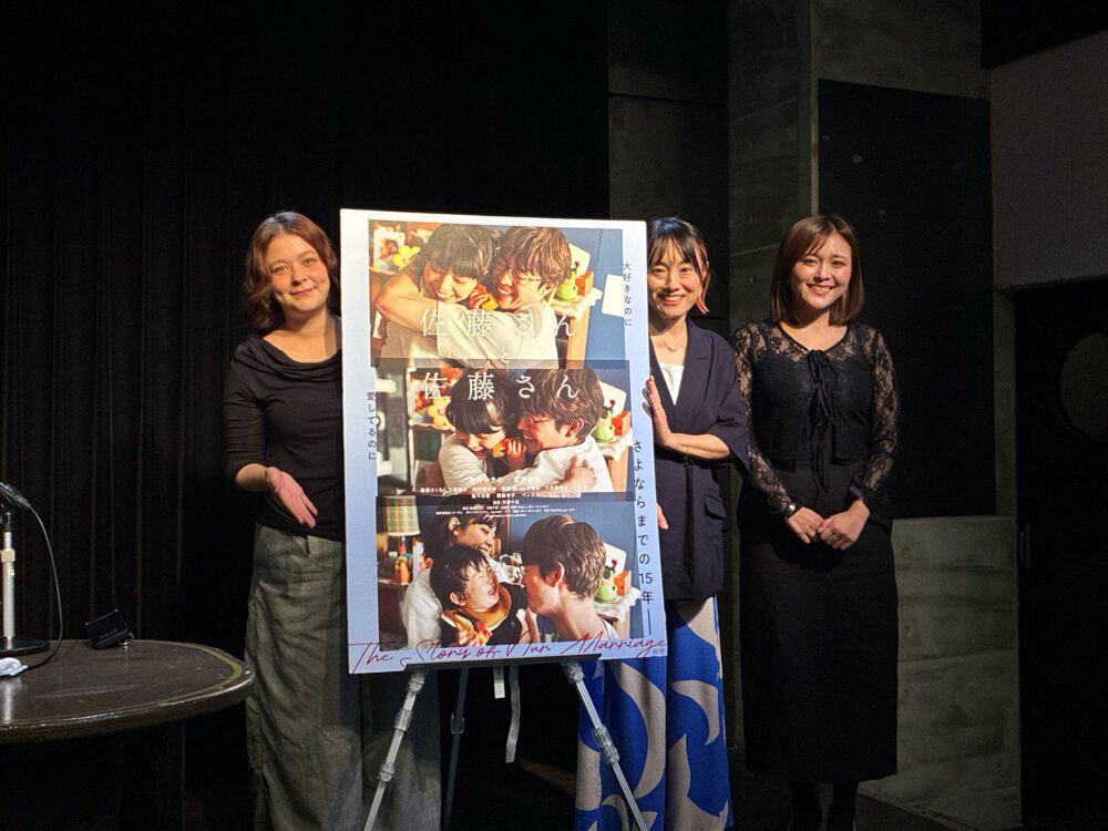 この度、11⽉13⽇と14⽇に⼀般試写会が開催され、13⽇は「アフターシネマカフェ」として、天野千尋監督、映画ソムリエの東紗友美、映画・⾳楽パーソナリティーの奥浜レイラによる本⾳炸裂のトークイベントと交流会が⾏われ、14⽇には婚活アドバイザーの植草美幸の登壇イベントが⾏われた。