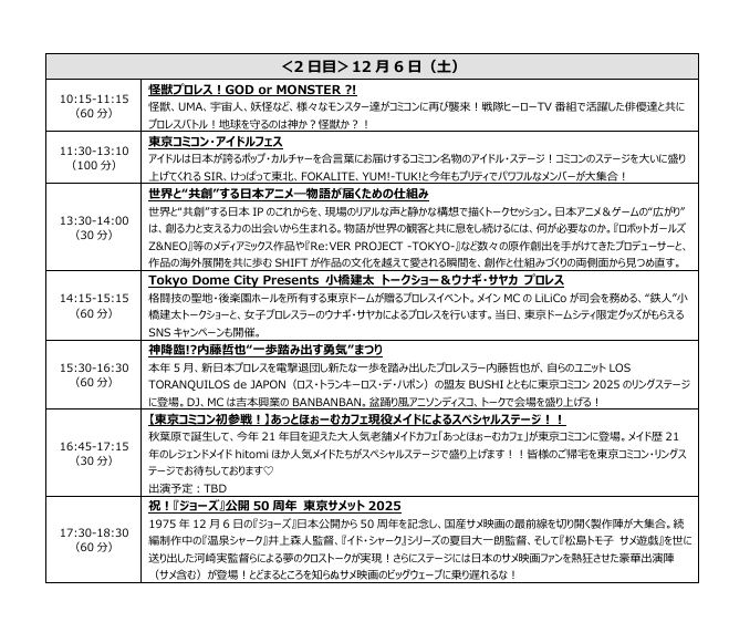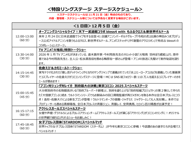 特設リングステージについては各日、最終演目終了後の時間はリングをフォトスポットとしても開放いたします。 1 23 4 5 Post ShareMOVIE東京コミコン 西崎羽美監督『よそ者の会(2023)』+『よそ者の会(2025)』 ユーロスペースにて2026年1月24日より一週間限定公開決定!前の記事 『迷宮のしおり』『Christmas Market in 横浜赤レンガ倉庫』クリスマスツリー点灯式 オフィシャルレポート次の記事