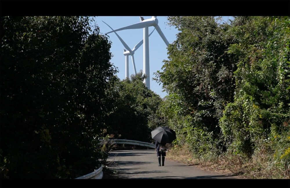 この作品は二人の女性が登場する。分身のような二人はそれぞれが同じチェキカメラを持ち歩き、一人は異様な気配にレンズを向け、一人は黒のワンピースを様々な場所に吊るして撮影している。二人はその彷徨いの中でお互いの存在を探し求めているようにも見えるが声は届くことがない。日常的な時間・空間を超越して二人の行動を描くこと、見つめ合うという強い視線の交差はあるものの二人は決して触れ合うことができないという空虚感を描くことでこの世界の不確実性を描きたいと思った。最近の戦争や環境問題、AI に想像される狂気性といった、恐ろしい気配に満ちた時代になってきたという底知れぬ不安を背景に、現実と虚構の境目が不明瞭になってきた時代を私なりに表象してみた。