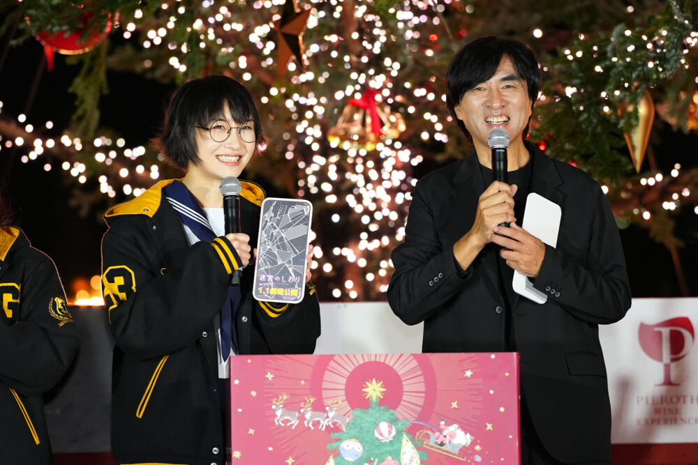 主題歌も流れる中、光り輝いたツリーに会場からも盛⼤な拍⼿と歓声が起こる。点灯されたツリーを⾒て、河森監督は「クリスマスツリーが帆にかかって、セール(出航)しているようで、そこに灯りがついたようで素敵ですね。」と、SUZUKAは「クリスマスのワクワク感をしみじみと感じます!」と感激した様⼦。