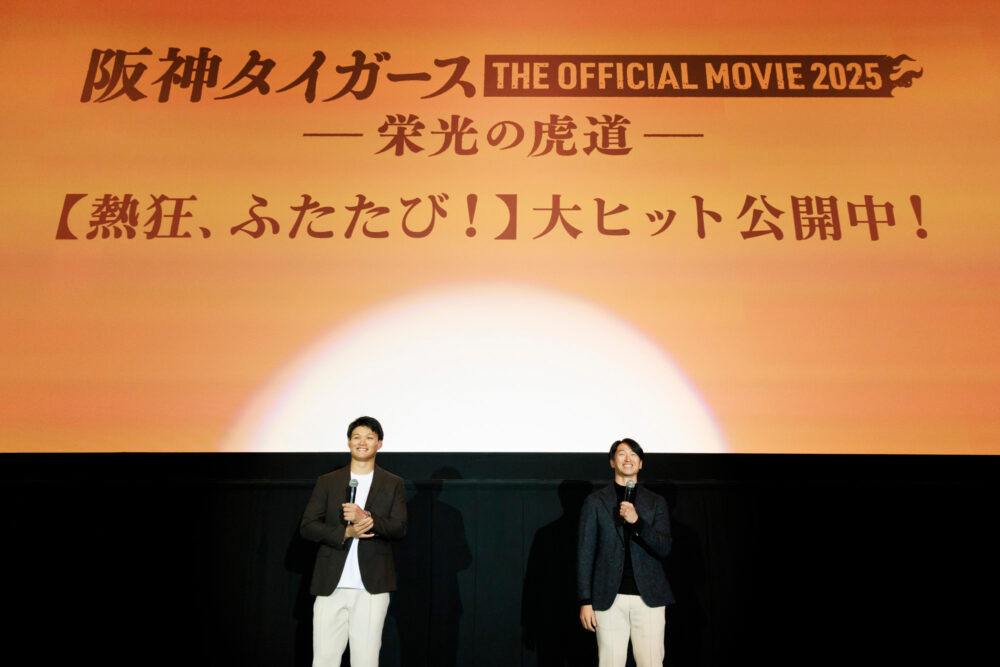 この度、11月24日(祝・月)、甲子園球場の所在地である西宮市にある映画館TOHOシネマズ西宮OSにて行われた、公開記念舞台挨拶に、近本光司選手と森下翔太選手が登壇した。