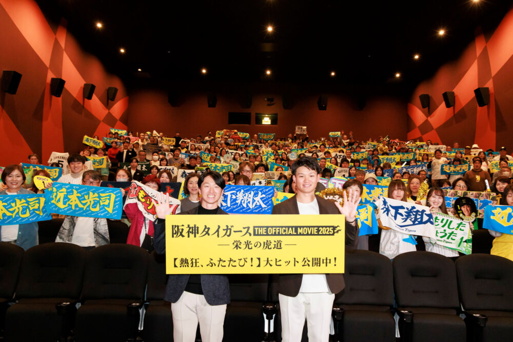 最後に、近本選手が「また来年もこういう映画が上映できるようにチーム一丸となって頑張っていきます。応援よろしくお願いします」、森下選手が「こういう機会を増やせるように、野球で見せたいと思ってます。また、それを見て勇気をもらってほしいです」と締めくくり、舞台挨拶は終了しました。