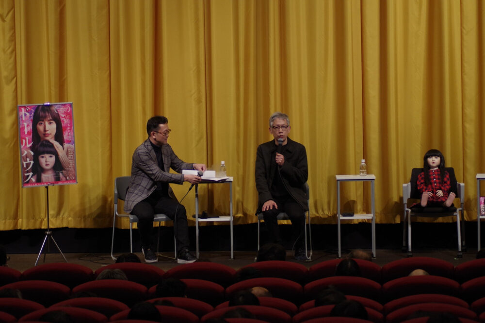 冒頭「今日は楽しい話…いや、怖い話をしに来ました。よろしくお願いします」いうあいさつの後、当日は『ドールハウス』の前に『スウィングガールズ』が上映されており、ほとんどのお客様が2作とも観賞したことを知ると「今精神がぐっちゃぐちゃになってないかなと心配してます。 『スウィングガールズ』の多幸感に比べて『ドールハウス』の絶望感の幅がありすぎるので(笑)」という矢口監督のコメントからトークショーがスタート。