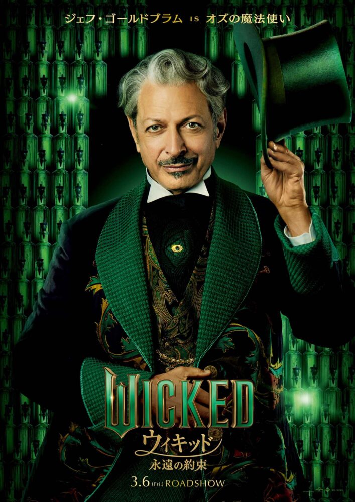 シルクハットを手に不敵な笑みをみせるのが、オズの国で最も偉大で恐ろしい存在であるオズの魔法使い。自分が築き上げた世界が、実はまやかしであることをエルファバに気づかれた彼は、彼女を捉えようと躍起になる。オズの未来の先に、彼は何を目にするのだろうか?
