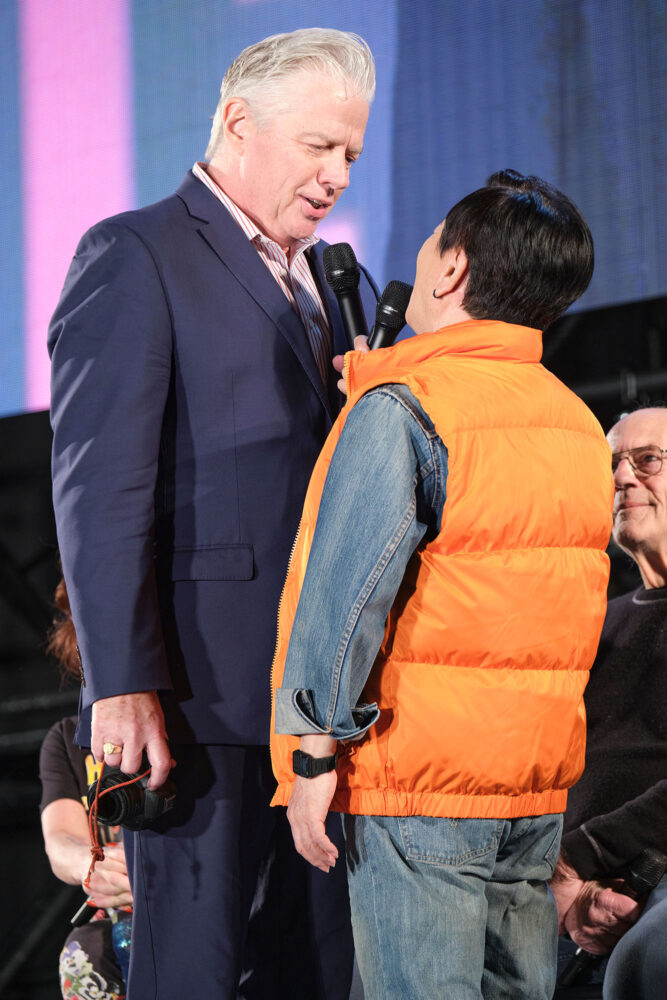 三ツ矢の質問は男性陣にも及んだ。作中では荒くれ者のビフを演じたトム・ウィルソンに対し、「ビフ、今のあなたはとても紳士的ですね。なぜですか?」とユーモアを交えて質問。