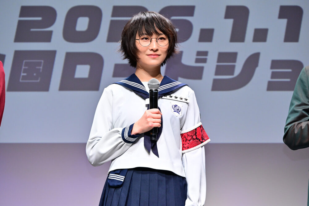 声優初挑戦のSUZUKAは、寺⻄との共演について「肩で⾵を切るように現場⼊りしていてやっぱカッコいいな!と思った」と感想を述べると、寺⻄は「いじってる!いじってる!慎ましく⾏きましたよ!」と⼤慌てながらも⼤笑いのすっかり仲良しモード。原⽥はSUZUKAとの共演を振り返り「声優業は初めてと聞いたのに、堂々としていらっしゃる。⾒習わなければ思った」とリスペクトしつつ「SUZUKAちゃんが座って休まずにずっと⽴っているので、⼼の中で『休め!休め!』と⾔っていました」と笑わせた。