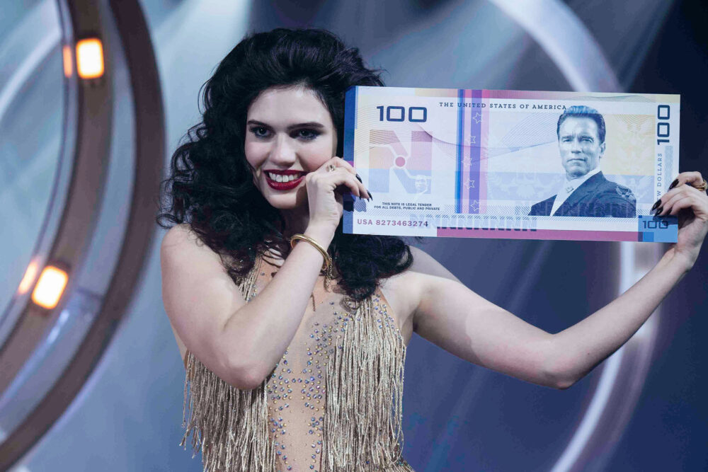 また、“アーノルド・シュワルツェネッガー”の肖像が描かれた奇妙な紙幣も印象的だ。ディストピア的な世界観と、唯一無二のエンターテインメントを予感させるカットの数々に公開が待ちきれない!