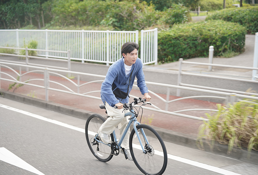 ストイックでひたむきな印象でしたね。内側から輝いているようなオーラがありました。ご挨拶させていただいたときも、全く疲れを見せずにはつらつとしていて、「これからツアーがあるんですけど、映画公開までに知名度を上げてきます」みたいな発言をしてくださっていて。お忙しいでしょうに公の場では大変そうな素振りを少しも見せない方だな、と、尊敬の念を抱いたのを覚えています。現場の雰囲気を良くすることに長けている方だと思い、この能力を含めてのプロなのだな、と。映画でいうと自転車で疾走していたシーンはとても印象的でした。